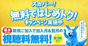 スカパー!は、新規で「スカパー! 基本プラン」に加入・契約した方を対象に、視聴料が最大2ヶ月無料となる「スカパー! 無料ではじめトク!キャンペーン」を本日4月28日よりスタートした。