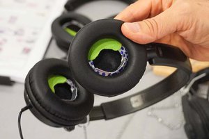 ヘッドホン・チューンナップ・メソッドは、ヘッドホンの音をスピーカーで視聴したような聴こえ方にするための独自のアイテムをアピール。PETシートをカットして作られており、耳の後方あたりの音を前方に送り、それを反射板で受け止めて耳の前方向から聴こえるようにするといったもので、スピーカーのようなステレオ定位を実現し、リアルな残響音が得られると説明。ブースでは自作マニュアルが配られていた。