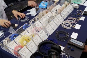 ORBブースはイヤホン/ヘッドホンリケーブルを中心に出展。昨年発売の純銀導体ケーブル「Celestial force」や、各ケーブルに新たにラインナップしたPentaconn ear採用モデル/T2コネクタ採用モデルなどがヘッドフォン祭り初出展となった。