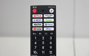 付属リモコンには、Netflix/Amazon Prime Video/U-NEXT/Hulu/ABEMA/Paravi/YouTube/Disney+の計8つの動画サービスを起動できるダイレクトボタンや、内蔵マイクによる音声での番組検索機能を搭載。リモコン本体は、スリムかつ軽量設計によって持ちやすさにも拘ったとしている。