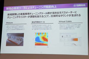 こうしたツールを作り上げることで、優れたパラメータが自動的に導き出されるように思えるが、そうはならないと同社は主張する。将来的にそうなる可能性は示しつつも、現在はその段階には到達しておらず、人間が感動する、感性に届くチューニングは、あくまで人間によるチューニングが必要ということだ。本技術では、このパラメータをもとに、同社チューニングマイスターが最終的なチューニングを施している。
