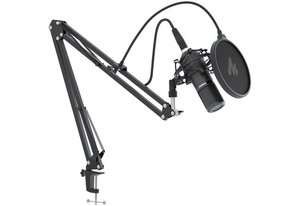 「AU-PM320S」は、歌や楽器の録音にも耐えうる解像度と単一指向性を備えたXLRタイプのコンデンサーマイク。角度調節が可能なアームブームスタンドやポップガードも付属する。