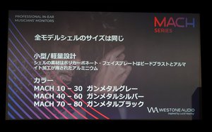 「MACH」シリーズは、同ブランドのカスタムIEM「ESシリーズ」のサウンドと快適性を、ユニバーサルIEMで再現するべく開発したという新シリーズ。ドライバーは、ユニバーサル式に対応するべくESシリーズのドライバーをベースに新開発したBAドライバーを採用した。1基搭載の「MACH 10」から、8基搭載の「MACH 80」まで全8モデルをラインナップする。