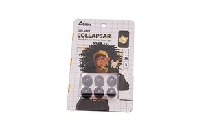 COLLAPSARは、MOONよりも高さが短いハーフサイズのモデル。装着部分にスリットが入っており、一般的な円形ノズルや、同ブランドの「OH7」「OH1S」「OH2」といった楕円形ノズルを採用したイヤホン、ノズルが短い完全ワイヤレスイヤホンなど、様々なイヤホンへの利用を想定した形状なのだという。