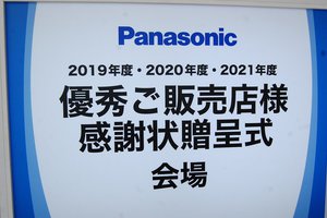 パナソニックは、新型コロナウイルスの感染拡大で初めて延期となった2019年度および2020年度を合わせて3年合同となる、「2019、2020、2021年度 優秀ご販売店様感謝状贈呈式」を開催した。
