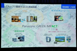 家電の省エネ化や幅広い事業領域のおけるCO2削減へ貢献し、グループ長期環境ビジョン「Panasonic GREEN IMPACT」の取り組みを推進する。「私どもが目指す心と物の豊かさは、あくまで社会で暮らし仕事をするすべての人々にとっての豊かさでなければならない。おひとりおひとりが快適で安心で心身ともに幸せな状態、すなわち、ウェルビーイングな状態を実現していきたい」と訴えた。