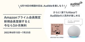 Amazonの聴く読書サービス「Audible(オーディブル)」は、6月19日の「朗読の日」にあわせ、Amazonプライム会員を対象にした3ヶ月無料キャンペーンを本日6月15日より実施する。