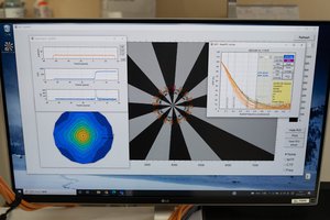 また、カメラ本体やレンズのMTFを計測するシステムも用意され、こちらも実際にデモが行われていた。8Kカメラに対応するほか、リアルタイムで数値を確認できることから、フォーカスや絞りなどを調整しながら確認することもできる。キャプチャーデバイス等で映像入力さえできれば一般的なPCで動くとのことで、会場ではノートPCで演算を行っていた。