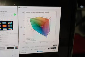 ディスプレイ関連でいえば、「TEST Lab」という場所にも色評価用のシステムが展示。トプコンテクノハウスの2D分光放射計「SR-5100」とアストロデザインの信号発生器「VG-876」を組み合わせ、実際のこの場所でディスプレイの測定・評価サービスを日々行っているという。一般的な測色器はピンポイントだが、SR-5100は2Dで一度に画面全体を捉えられることで、色ムラなども部分ごとに細かくチェックできるのことだ。