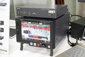 会場では6G-SDIとHDMI 2.1を相互変換可能なインターフェースアダプター「IA-1566」を、ソニー製カメラとビデオレコーダーとディスプレイの間に接続して、4K/120pの映像をモニターに映し出すデモンストレーションを実施した。また、レコーダーの特徴として、ハイフレームレートで撮影した収録素材のフレーム数を変更することで、シームレスでスロー再生映像を用意することが可能となっており、本機能についても会場ではデモ映像を視聴することができる。