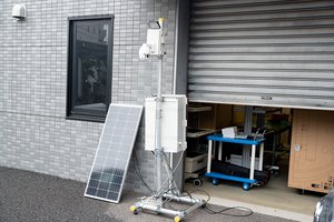 また、固定の監視カメラとして「ASLS-150」といったソリューションも提案されている。こちらについても最大フルHD解像度をサポート、通信規格についても4G LTE SIMに対応することで追加のネットワーク工事を不要とするほか、充電用のソーラーパネル(100W×1および50W×2)を搭載することで外部電源を用いることなく使用できるとしている。また、最大6倍の光学ズームに対応しており、同社スタッフは「遠隔でパン/チルト/ズームができることも魅力の一つ」として紹介を行った。