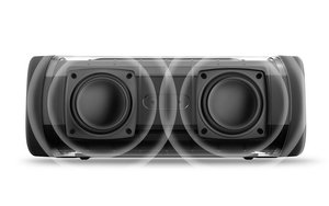 5,200mAh(2,600mAh×2)の大容量リチウムイオンバッテリーも内蔵しており、最大16時間の連続再生が可能。ほか、内蔵マイクによるハンズフリー通話や、本機を2台接続したステレオ再生、Alexa/Siri/Googleアシスタントなどのボイスアシスタント機能もサポートする。
