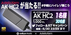 e-onkyo musicは、Astell&KernブランドのポータブルDAC「AK HC2」が本日6月17日に発売されたことを記念し、連動Twitterキャンペーンを開始した。
