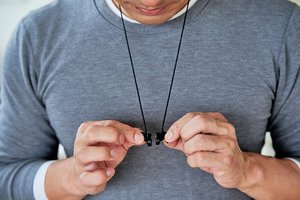 本体は付属のケーブルを用いて左右を繋ぎ、装着していない場合に首掛けすることが可能。さらに、ボリュームスライダー部がマグネット仕様になっており、首掛け時には左右をくっつけまとめておけるなど、紛失防止にも配慮された設計となっている。そのほか、フォームイヤーピース(S/M/L)各1ペア、キャリングケースを同梱する。本体質量は8g。