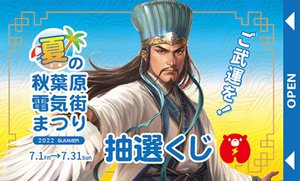 秋葉原電気街振興会では、7月1日-7月31日の期間、恒例の「夏の秋葉原電気街まつり」を開催する。今回は、オンラインゲームとアプリを展開するコーエーテクモゲームスの『三国志 覇道』とのコラボレーションにより、オリジナルグッズやお買物券などをゲットできるキャンペーンが実施される。秋葉原電気街詳細は以下のとおり。実施期間中に、ぜひ秋葉原電気街でお買い物をしてみてはいかがだろうか。