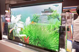 開発したばかりの製品ということもあり、導入費についても「安くはない」額になっており、現在はサイネージとしての使用を主にBtoB向けソリューションとして展開を目指す。しかし、本製品の持つポテンシャルの高さから「10年後は一般家庭用のテレビディスプレイになっていくのではないか」と展望を語った。
