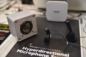 シーイヤー株式会社では、ビームフォーミングとハウリングキャンセルを利用し、騒音環境下でも確実な収音を実現する技術展示を実施。電車や乗用車の中といった騒音環境下においても確実に声を収音する業務用の引き合いを期待したプロダクトとなっている。