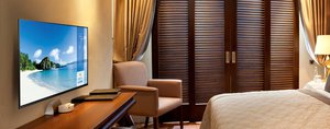 客室テレビ用途としての「最大音量と初期音量の設定」やオフィス会議用に便利な「信号検出による自動起動」など、業務用途向けに必要な各種設定を行える“プロモード”を搭載。また、ブラビア本体は Webベース(HTML5)技術を採用しており、セットトップボックスなしでのデジタルサイネージ運用を実現するなど、用途に合った設置場所や画面レイアウトを選べるようになっている。