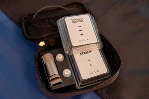 AZLA SednaEarfit MAXを使用するプロダクトとして「ライヴ用イヤープラグ」も同社ブースにて展示。付属の同イヤーピース以外にも、ユーザーの使用するイヤーピースの装着にも対応し、遮音性とフィット感のカスタマイズができるようになっているという。また、遮音性を変えることなく低域の取り込み量を調整できる切替機構を搭載する。