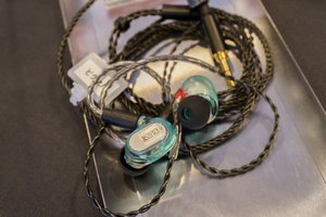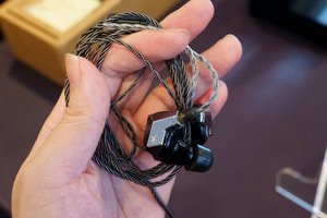 天然サボテン材に樹脂を含浸させたスタビライズドウッドを筐体に採用し、ドライバーは片側あたり12基のBAドライバーと、独自の骨伝導ドライバー1基の計13基を搭載。骨伝導ドライバーの振動板は、銀とパラジウムの合金に27層ものセラミックコーティングを施したもので、従来ドライバーよりも骨伝導の振動が強化されているとのこと。PW Audioブランドの最高級モデルをベースにしたという付属ケーブルも存在感を放っていた。
