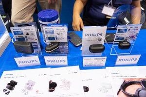 TPVテクノロジージャパンのブースでは、同社が取り扱うPHILIPSから、8月に発表予定のヘッドホン「TAH8856」が展示。オープン価格となるが、2万円を切るくらいの価格で発売したいという。