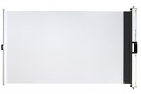 設置面では安定性の高い回転脚を採用し、幕面のセットはしっかりと止まるスリーブ・ロック方式を採用する。スクリーンサイズは2,314W×2,245H、展開時の外形寸法が2,847W×2,400H×610Dmm、質量は約14.2kg。