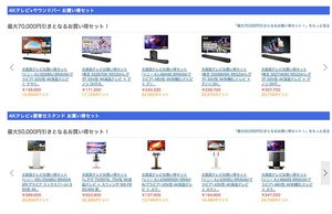 また、4Kテレビと壁寄せスタンドも最大5万円引きとおトクに。テレビはソニーと東芝の様々なタイプの製品が対象となっているほか、壁寄せスタンドもいくつか種類が用意されているので、好みのセットが見つかりそうだ。