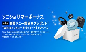 応募方法は、Sony Music Shop公式Twitterアカウント(@SonyMusicShop)をフォローし、対象ツイートをリツイートすることで完了。応募期間は8月4日 23時59分まで。当選発表は8月15日(月)正午以降に当選者へダイレクトメッセージで通知される。なお、第2弾として、その場でポイントが当たるキャンペーンの実施も予定されている。
