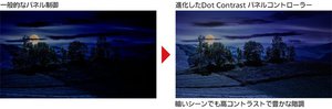 画素単位で明るさや色の情報を個別で制御する、独自の有機ELパネル制御「Dot Contrast パネルコントローラー」技術により、有機ELテレビならではの締まりのある黒、色鮮やかで高コントラストな映像を実現。暗部の解析精度を2021年発売のJZシリーズと比較して約32倍に高めることにより、暗部階調の表現力にも磨きをかけたとする。