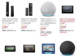 そのほかにも、ディスプレイ付きスマートスピーカー「Echoシリーズ」やタブレット「Fireタブレット」シリーズなどもセール対象となっており、合わせてチェックしてみてほしい。