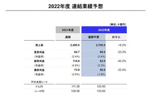 同社では、当期の厳しい事業環境の結果だと説明。ウクライナ情勢などに加え、急激な円安の進展、5月の中国でのロックダウンによる工場停止などが影響したという。