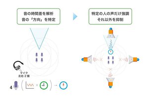 同社がワイヤレス集音器「able aid」で培った集音技術を活用し、高い通話品質を実現したとする耳掛けタイプのテレワーク向けワイヤレスイヤホン。4基のマイクで集音した音を瞬時に解析し、それぞれの音が聞こえてくる方向を判別することで、装着者の声だけを高精度にピックアップできるという「コミュニケーションフォーカス機能」を搭載する。