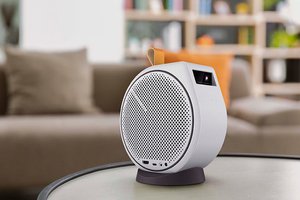 GV30は、「子どもたちを産み育てやすいデザイン部門」で受賞した、2.1chスピーカー内蔵のモバイルプロジェクター。135度の角度調整機能を備えることで、ロフトや傾斜のある天井などにも投写が可能。縦横20cm以内に収まるコンパクトな円形デザインと、直感的な角度調整によって、子どもの目線に合わせて様々な映像コンテンツが楽しめるとする。