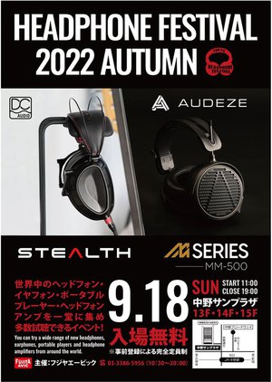 出展予定ブランドの詳細は、後日アナウンスされることが予想されるが、今秋日本市場投入予定のDan Clark Audioの平面振動型ヘッドホン「STEALTH」と、高級ヘッドホンの老舗、AUDEZEより「MM-500」が代理店の許諾を得た上で本イベントメインビジュアルに採用されている。いずれの機種も会場にて試聴できるとのことだ。