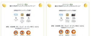 そして最大15%の場合は、プライム会員で3%、アプリからの購入で0.5%、Amazon Mastercardでの購入で3.5%。これに加えて、家電・大型家電(PC・テレビ・オーディオ除く)の購入で8%の還元だ。全体的にポイントの割合が高くなっている。