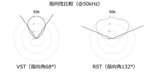 本製品のRSTでは、管楽器で多く用いられる赤銅を基材としたダイアフラムを採用し、粒立ちの良い高音を得るため、表面には独自の特殊なセラミックコートを実施。50kHz帯での指向性において、VSTが指向角68°のところ、RSTでは指向角132°を実現している。