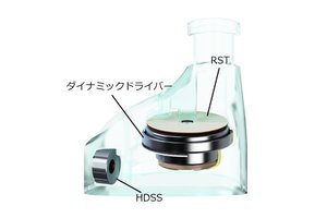 そこから生まれたのが、シンバルやオルゴールなどのように分割振動を有するRST。ダイナミックドライバーからの音波をダイアフラムに照射し、振動を誘発する原理となっており、ダイアフラムの寸法や材質、支持方法により音質をコントロールできるとのこと。