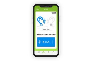 音を聞いてボタンを押すのみの手軽な聴力測定機能も搭載し、左右の耳で各125/250/500/1,000/2,000/4,000/8,000Hzでの聴力測定が行える。なお、測定結果はグラフ表示で確認できる。