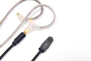 片側のイヤホンコネクター基部に付属のブームマイク接続用コネクタを備えたイヤホンリケーブル。本ケーブルを使用することで普段使いのIEMをヘッドセットとして利用できる。