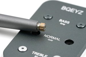 Bass(グレー)/Normal(ゴールド)/Treble(シルバー)の3つの音質を切り替え可能な独自開発のマグネット式チューナーを装備。ボイスコイルの磁力にチューナーの磁力を付加することで振動版の駆動力を向上、イヤホンの横方向の音場感を向上させるとのことだ。
