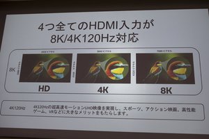 ほか、eARCやALLM/VRR/QFTといったゲーム向け機能にも対応。HDRはHDR10/Dolby Vision/HLG/HDR10+/Dynamic HDRに対応する。