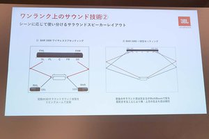 そしてハーマンインターナショナルの担当者は、JBLはドライバーの設計・開発・設計を行っている「Manufacturer」であることが根幹にあり、音の素性が良いからこそ、MultiBeamなどの技術が効果を発揮できるとして、BAR 1000の一番のポイントはドライバーの性能に基づくハイクオリティなサウンドにあると述べた。