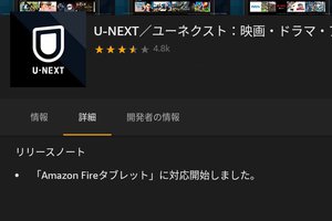 対応するFireタブレットのモデルは「Fire 7」「Fire HD 8」「Fire HD 10」の3サイズで、Fire OS 5.0以上がインストールされている必要がある。これまでFireタブレットにはU-NEXTアプリが提供されておらず、利用したい場合はWebブラウザからU-NEXTにアクセスするしかなかった。