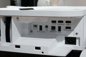 超短焦点モデルとして壁から2.5cmの距離で80インチの投写が可能。最大で150インチの投写が行える。設置をサポートする機能として「Epson Setting Assistant」アプリを用意しており、スマートフォンで投写画面を撮影することで、その写真データから映像の歪みを自動調整してくれる。また適応レーザーライト出力をオンにすると、使用環境の明るさに応じた映像へと自動調整する機能も備える。