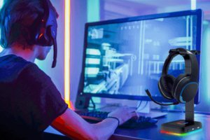 ゲオ、2178円の光るゲーミングヘッドホンスタンド。USBハブとしても使える