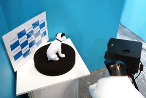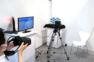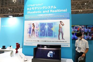 リアルタイムに3Dデータを生成、共有することが可能なインターフェース「R2モデリングシステム」は、ブース内で撮影された人や物の映像からリアルタイムで3Dデータを生成し、バーチャル空間に持ち込めるというもの。新技術により、さらにリアルな色や形状を再現できるという。