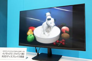 実際の人間や人形が仮想空間上でリアルタイムに3Dモデルとなって動いている様子を、ヘッドマウントディスプレイや裸眼3Dモニターで体感することができる。R2モデリングシステムで出力した立体データを、イノラックス ジャパン社のN3Dディスプレイで再現したデモも展示されている。