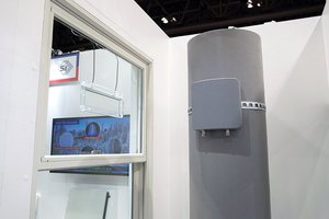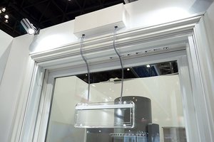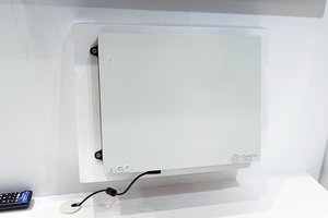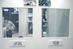 家の窓ガラスから5G電波を取り込み、家の隅々まで送り届けるための「FWA用アンテナ」も参考出品されている。5G通信を屋内で実現するためには、通常は建物の屋根や屋上にアンテナを立て、有線で屋内に引き込む方法が代表的であるが、設置工事が必要となるため相応の手間やコストが発生してしまう。