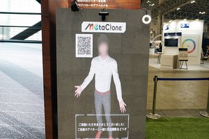 凸版印刷のブースでは、1枚の顔写真から短時間でフォトリアルな3Dアバターを自動生成できるサービス「MetaClone Avatar」を紹介。顔写真をアップロードし、身長や体重など必要事項を入力すると約1分でアバターが完成。まばたきや口を開くことも可能で、自然な表情も表現できるという。生成は低解像度、モノクロ写真などでも対応可能とのこと。