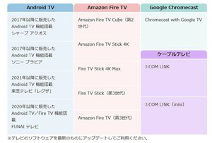 上記製品は、テレビから直接NHKプラスを視聴可能に。これまで、シャープAQUOS(アクオス)やソニーBRAVIA(ブラビア)のAndroid TV機能搭載モデル(2017年以降発売のもの)や、FUNAIのAndroid TV/Fire TV機能搭載モデル(2020年以降発売のもの)が先行して対応していたが、対応機種がさらに広がる格好だ。なお、レグザは2021年以降発売のAndroid TV 機能搭載モデルが先行して対応していた。また、非対応テレビでも、Amazon Fire TVシリーズやGoogle Chromecastを通してNHKプラスを視聴することができる。